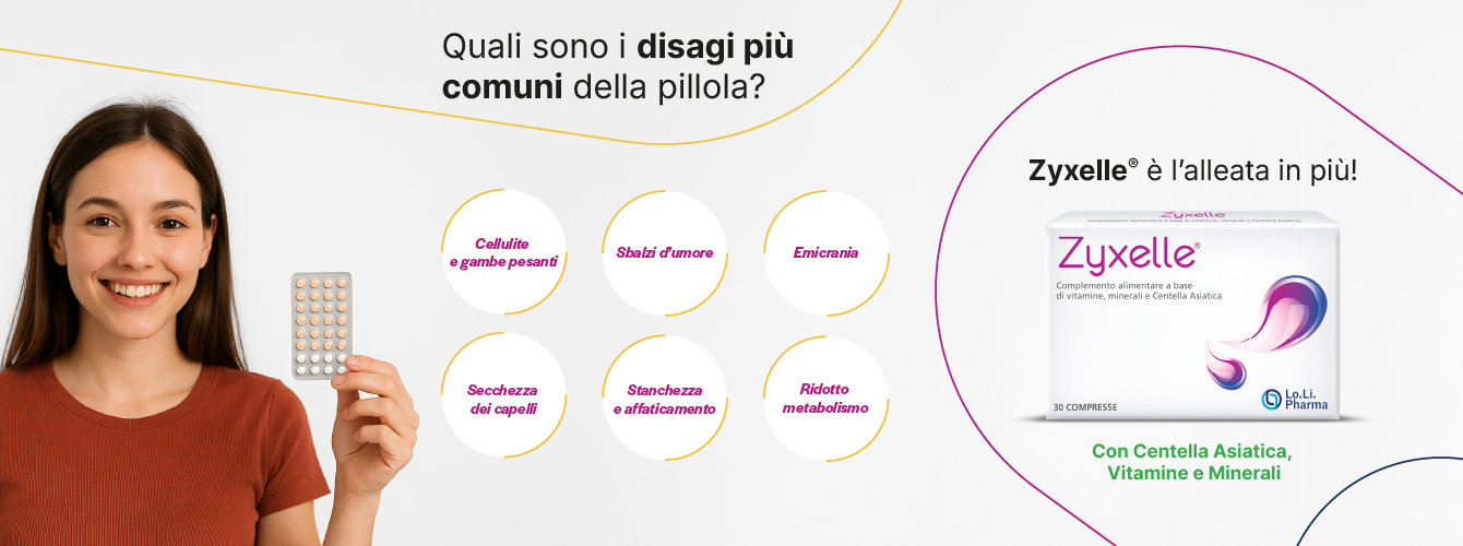 Zyxelle è un integratore alimentare a base di vitamine, minerali e Centella Asiatica, formulato per supportare le donne che abbiamo bisogno di integrare la quota dei nutrienti e
